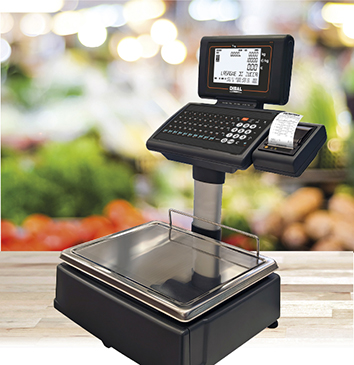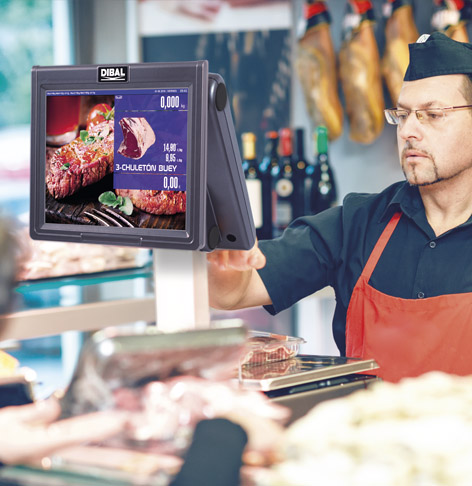 Balances électroniques poids-prix-montant avec écran tactile pour le vendeur et écran couleur TFT pour l´acheteur, imprimante de tickets ou d´étiquettes, ou double imprimante, et connexion PC.